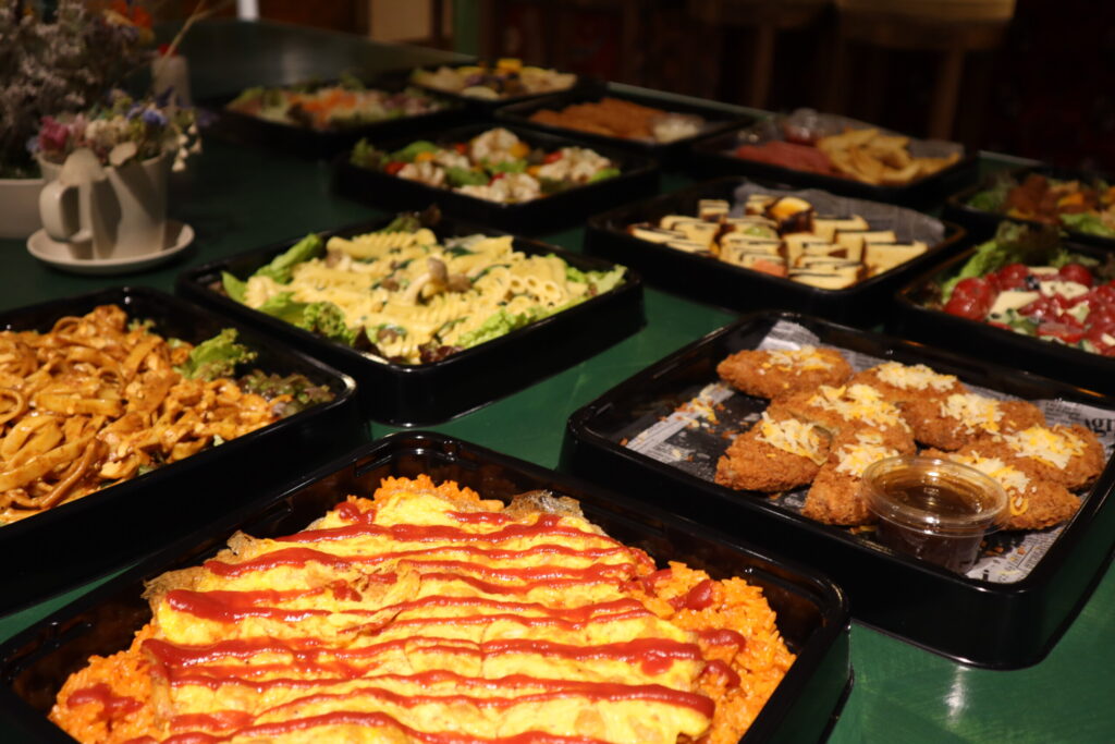 ドリンクはセルフサービスではなく、バーカウンターからスタッフが一杯ずつ丁寧にサーブいたします。ビール、ワイン、ハイボール、各種ソフトドリンクなど、ゲストをお待たせすることなく提供します。