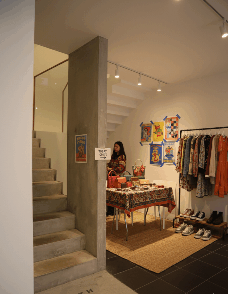 ハンガーラックや展示テーブル、鏡など、POP UPに必要な什器を完備。